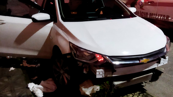 Havia um casal no veículo que estava com a parte frontal batida, ambos estavam visivelmente embriagados, a mulher xingava os policiais usando palavras de baixo calão e não acatava as ordens de abordagem. Foi preciso usar gás de pimenta para contê-la.