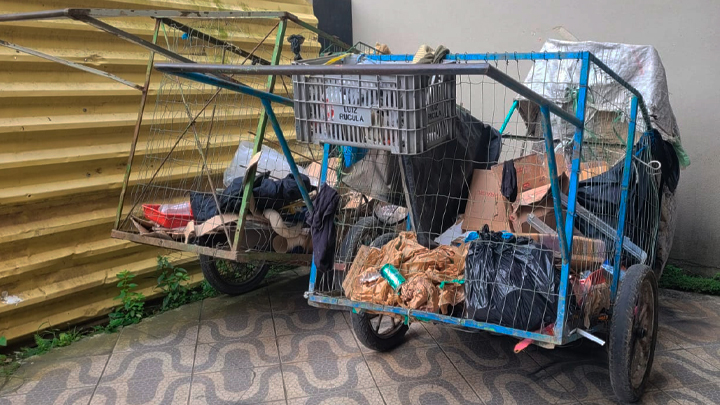 Os autores estavam carregando cada um o seu carrinho utilizado para coletar material e pararam na frente da loja, chegaram a cortar os cadeados, porém ao disparar o alarme eles fugiram, deixando para trás suas carrocinhas.