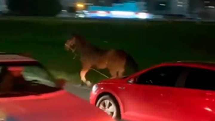 Os motoristas que trafegavam pela marginal da BR-101, em Itapema, levaram um susto quando, em plena avenida movimentada, um cavalo corria entre os carros.