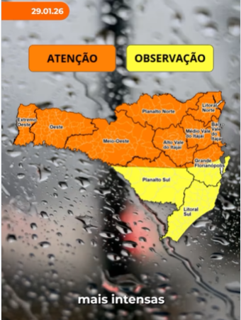 De acordo com os alertas meteorológicos, o risco é considerado alto para ocorrências como alagamentos, enxurradas e destelhamentos, especialmente nas regiões do do Vale do Rio Tijucas, Litoral Norte e Grande Florianópolis.