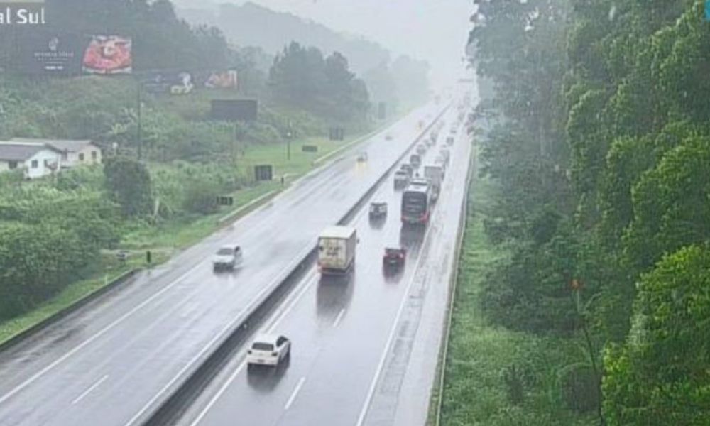 Além dos acidentes, as chuvas constantes ao longo do trecho contribuem para a dificuldade no tráfego e a lentidão registrada.