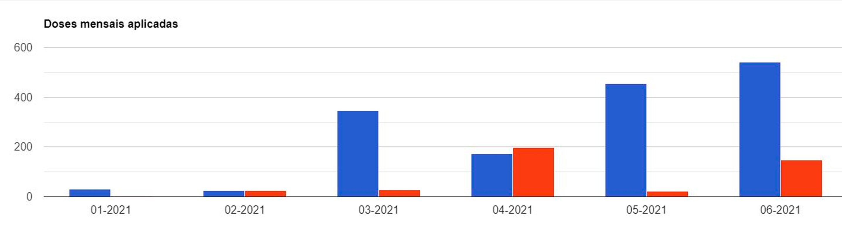 O levantamento da secretaria de Saúde, aponta que 58,12% da população já recebeu a vacina. Ao todo, são 1.586 pessoas imunizadas. O mês de junho trouxe o recorde de aplicações, onde quase 700 unidades de vacinas foram distribuídas.
