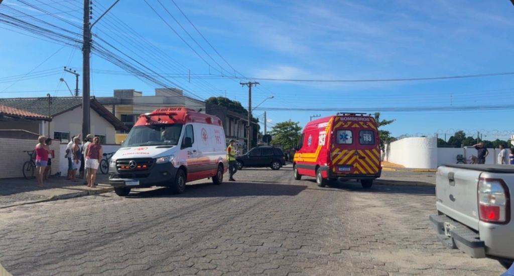 Um acidente de trânsito envolvendo um carro e uma motocicleta foi registrado na Rua Treze de Junho, em Tijucas.