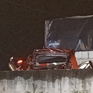 O impacto entre os veículos foi em cima do "túnel dos bombeiros” próximo do quartel do Corpo de Bombeiros, no km 151, em Itapema.