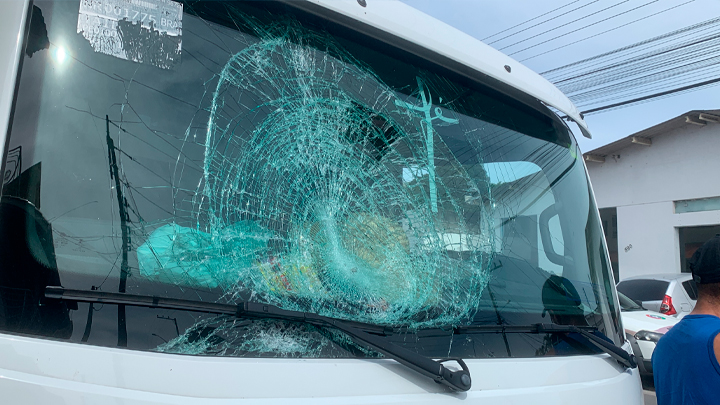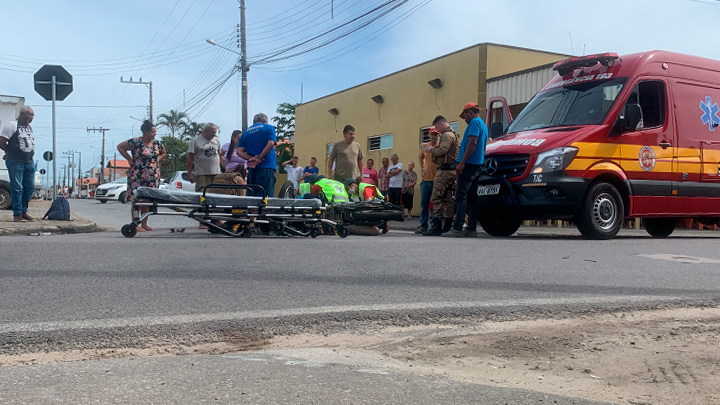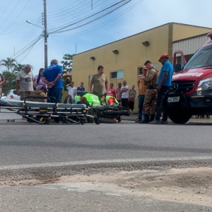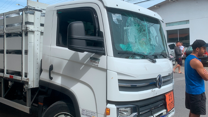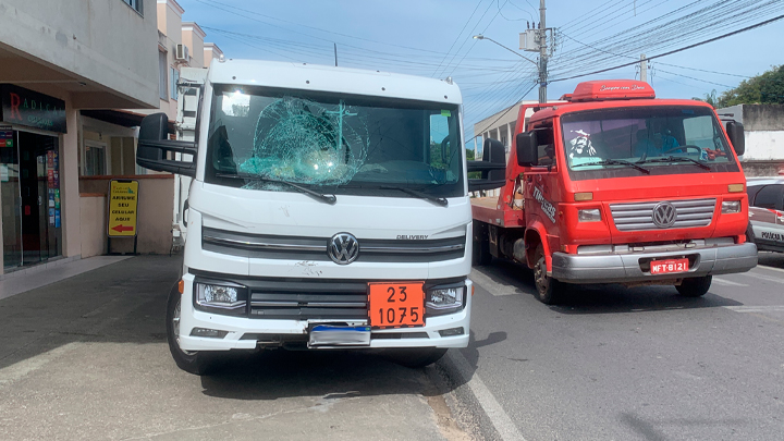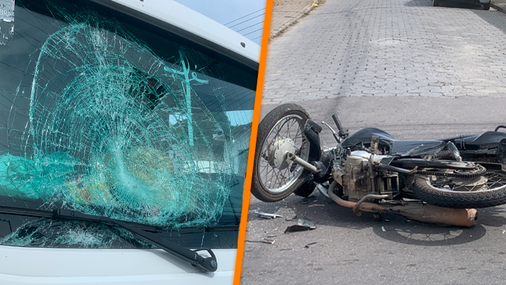 Com o impacto, o para-brisa ficou destruído e a vítima caída no chão. O Corpo de Bombeiros foi acionado e prestou os primeiros atendimentos ainda no local. A perna e o braço foram imobilizados, com suspeita de fratura.