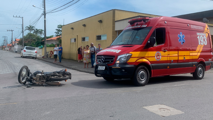 Além disso, o motoqueiro apresentava um corte na região do queixo. Ele foi levado de ambulância para o Hospital São José, onde receberá as primeiras avaliações médicas. Os ocupantes do caminhão não ficaram feridos.