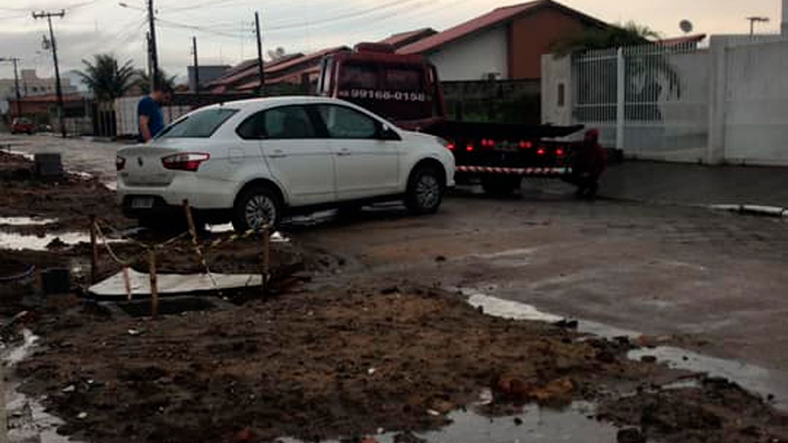 Porém, com as fortes chuvas das últimas horas, a areia acabou cedendo e deixando os veículos presos. Em publicação nas redes sociais, a moradora relata que entrou em contato com o setor responsável, mas recebeu o retorno de que não “estavam prevendo a chuva”. A resposta causou indignação.