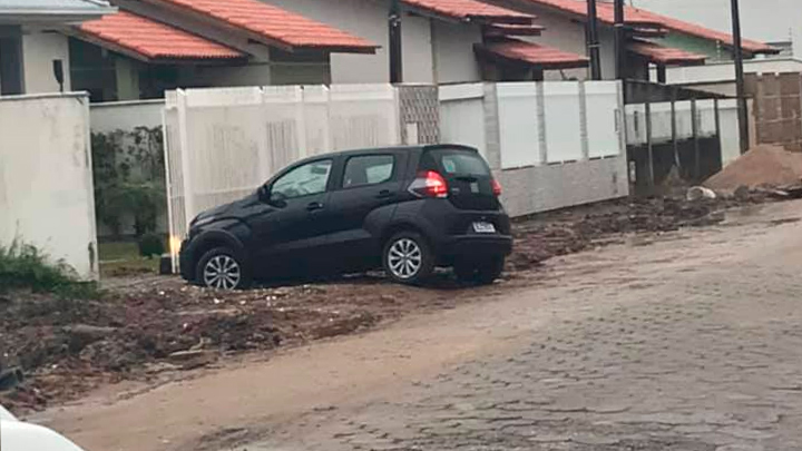 Os moradores da rua Raul Bayer Laus, em Tijucas, sofreram para conseguir sair de casa, durante esta sexta-feira, 29 de outubro. Pelo menos três automóveis ficaram atolados após a “calçada” ceder, em decorrência das obras não acabadas.