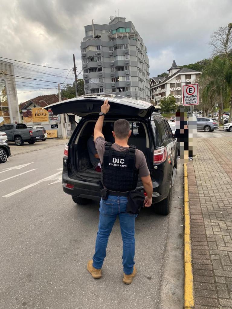 A prisão foi realizada pela Delegacia de Investigação Criminal (DIC) de Brusque após a troca de informações entre as polícias.