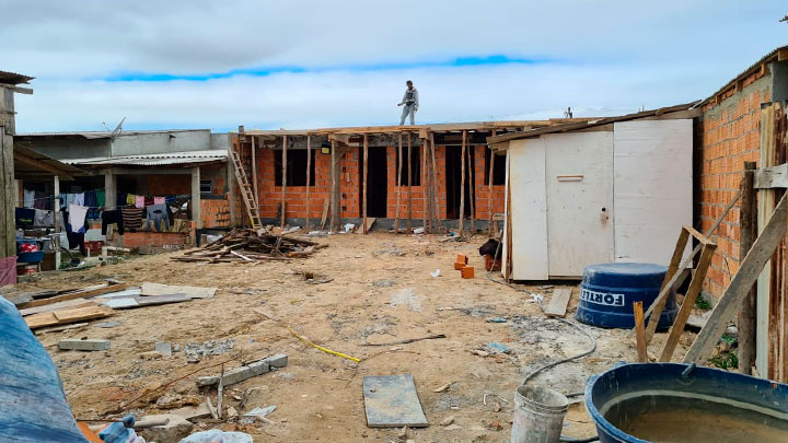 Uma guarnição identificou, por volta das 10h30 desta quarta-feira, 04 de agosto, uma casa de alvenaria sendo construída de maneira irregular na rua 448, no bairro Morretes, em Itapema. O local é conhecido por ser uma área de invasão.