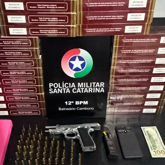 A abordagem teve início após a PM flagrar um usuário com 0,8 grama de cocaína, confirmando a venda de drogas no local. Na conveniência, os policiais apreenderam 9 gramas de cocaína, uma pistola calibre 9 mm com munições, além de mais de R$ 11 mil em dinheiro, US$ 900 e cigarros de origem estrangeira, caracterizando contrabando.