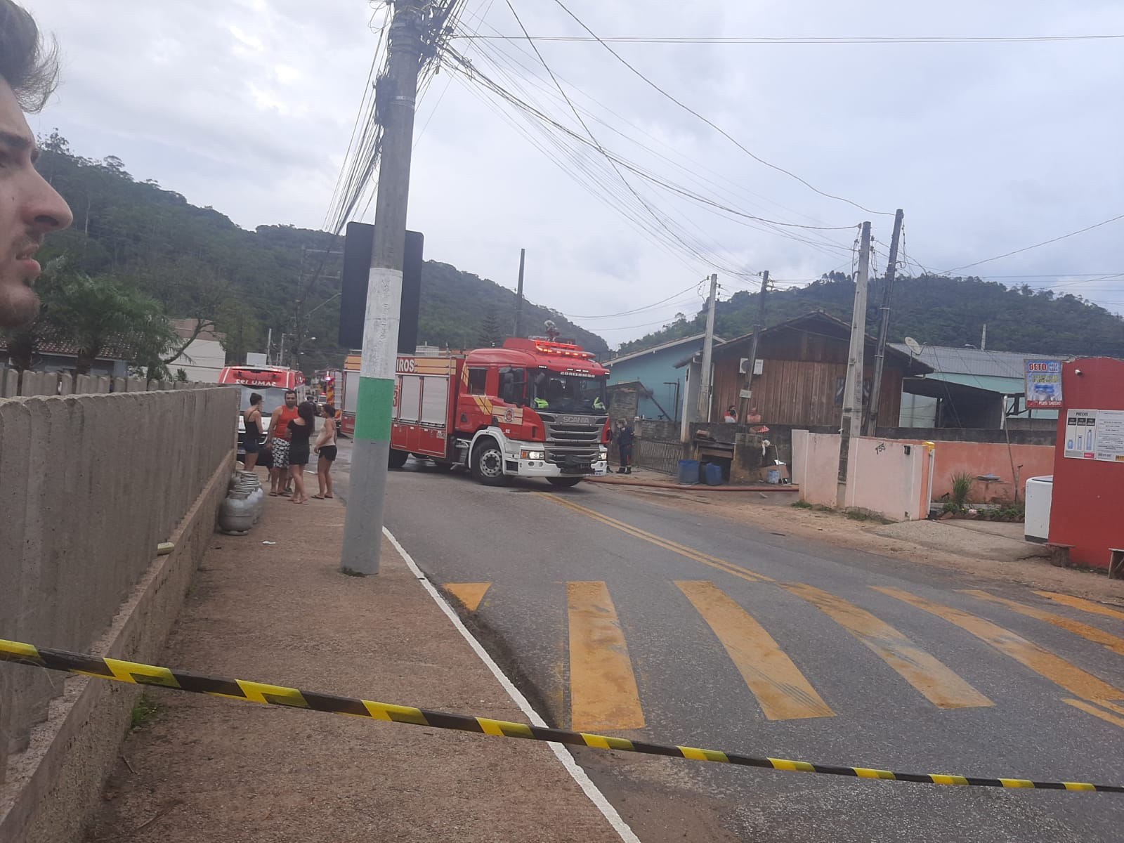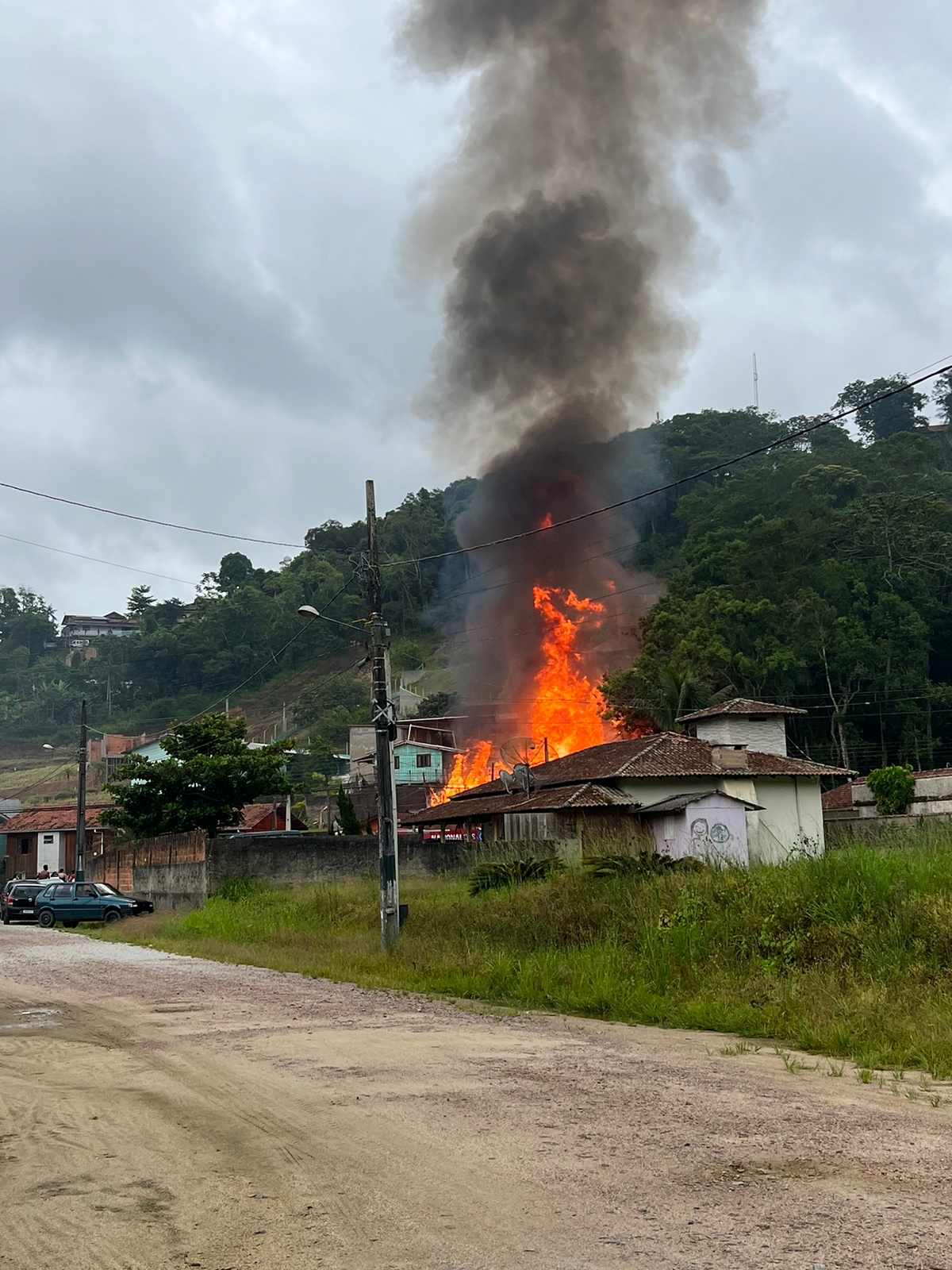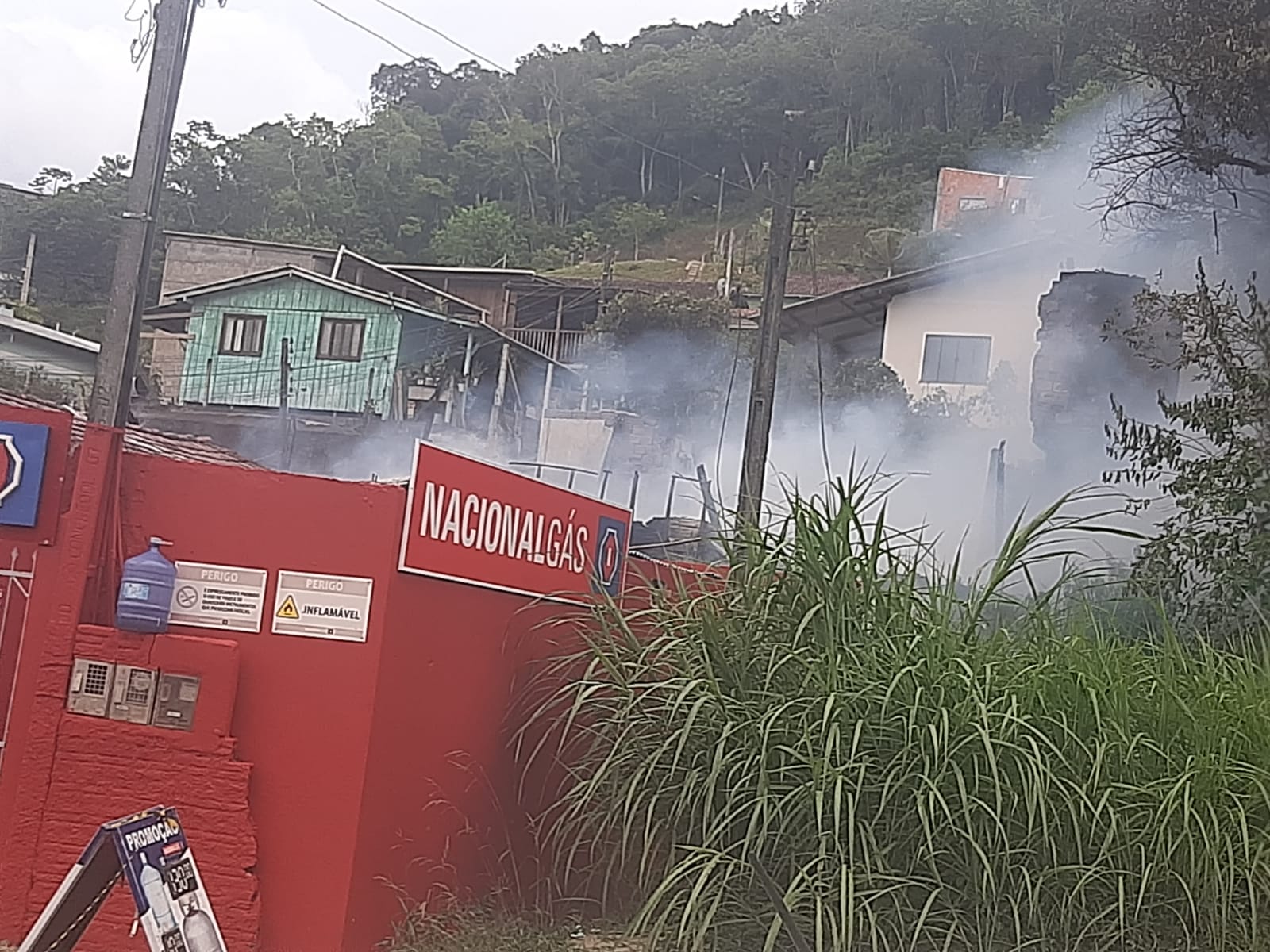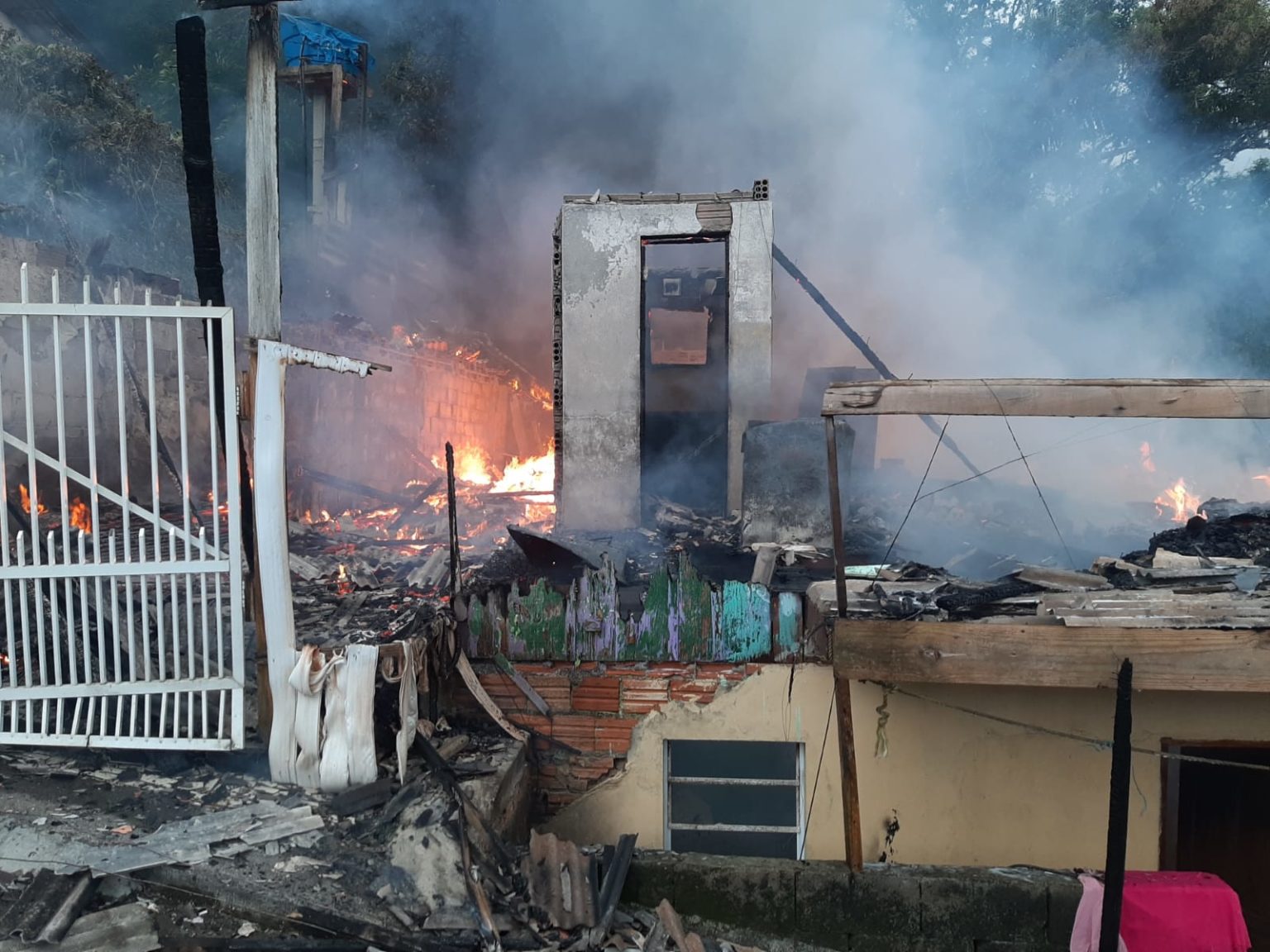 O incêndio atingiu a casa de três pavimentos, o primeiro de alvenaria e os andares superiores de madeira
