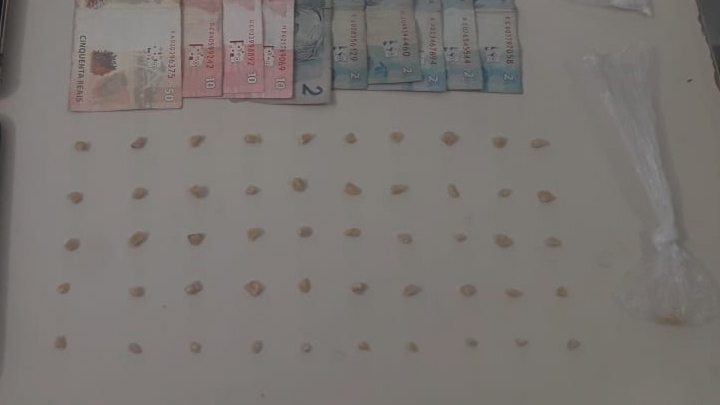 Na sequência outro usuário chegou para adquirir a droga, eles foram abordados no momento exato em que a transação era feita, o usuário estava ainda com o dinheiro na mão. O traficante desobedeceu todas as ordens e foi preciso o uso da força para detê-lo.