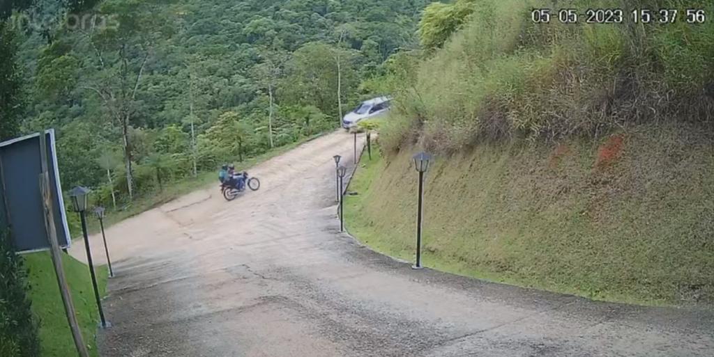 Na fuga, a dupla foi perseguida por uma viatura da Polícia Militar. Eles acessaram a Estrada da Onça, via que dá acesso à Canelinha. Pela péssima condição da estrada, a ocorrência foi repassada para policiais de Canelinha que interceptaram a motocicleta na chegada do Bairro Galera.