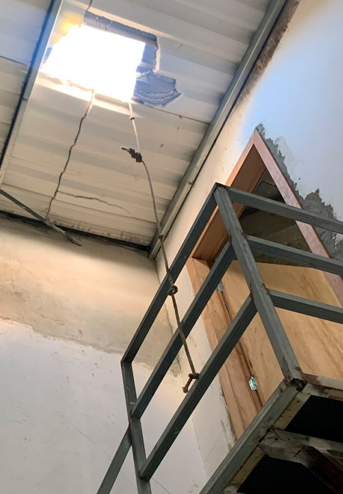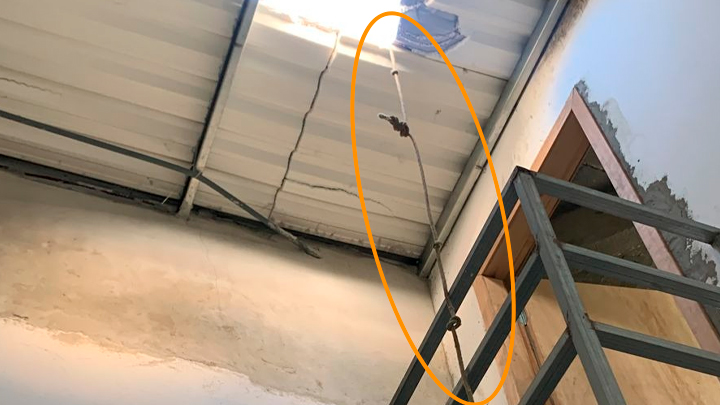 Uma corda foi encontrada presa no telhado do imóvel, parte da cobertura havia sido danificada. O buraco foi utilizado por criminosos para realizarem um furto no local. Diversos itens foram levados e R$3 mil que estavam em um cofre.