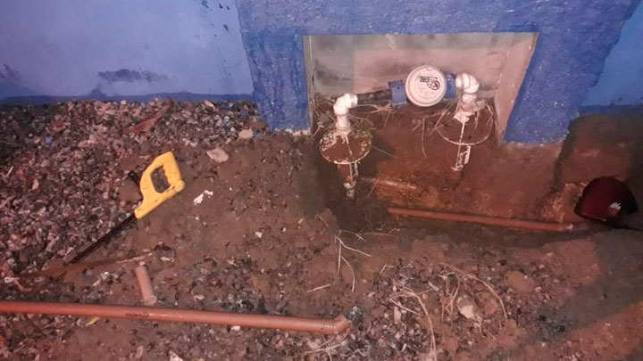 O local fica no bairro Morretes, em Itapema. Dois homens foram flagrados serrando o registro de água. Ao serem questionados do ato ficaram em silêncio.