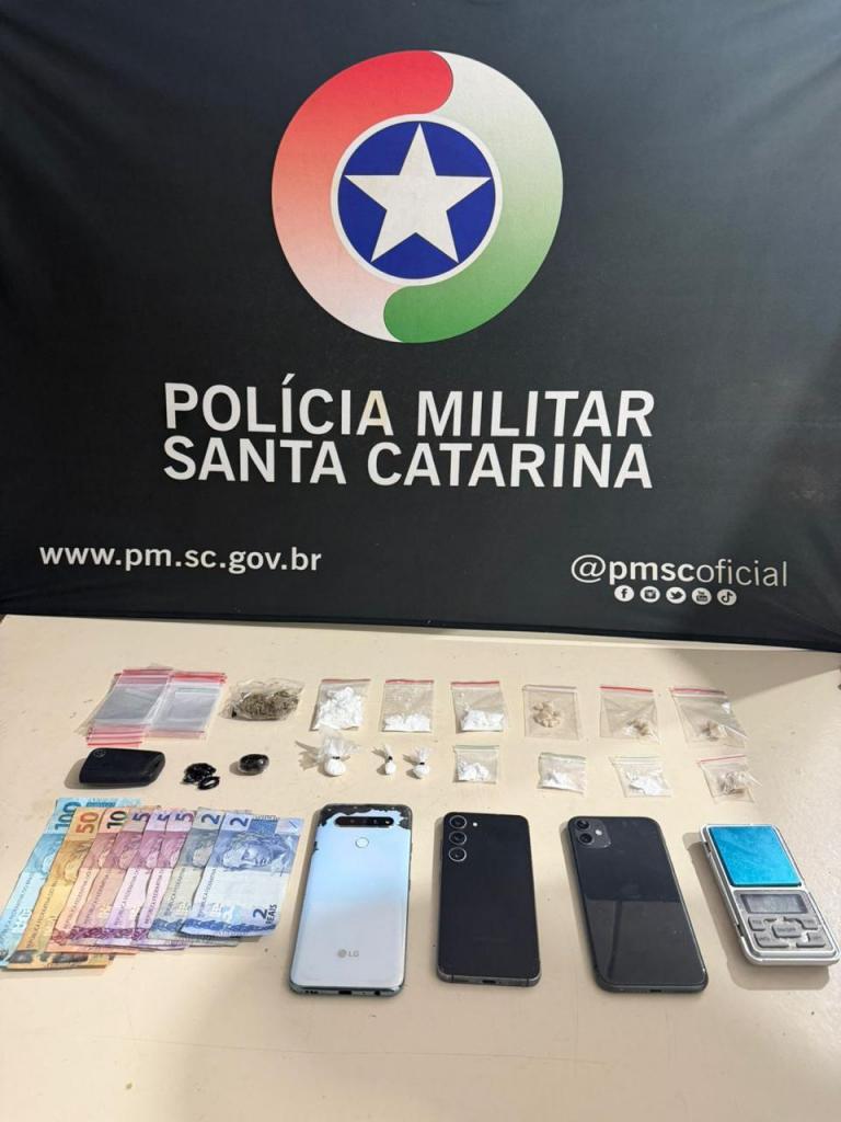 Para a Polícia Militar, a variedade e a quantidade de drogas, o fracionamento das porções, os materiais de embalagem e a movimentação financeira identificada caracterizam a prática estruturada do tráfico.