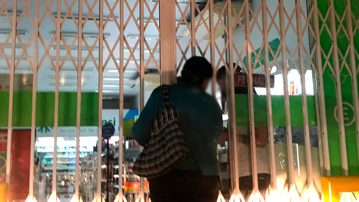 De acordo com o relato, a drogaria estava sendo fechada pelos colaboradores, exatamente às 23h01. A denunciante afirma que durante o fechamento, uma outra consumidora chegou ao local e foi atendida através da grade.