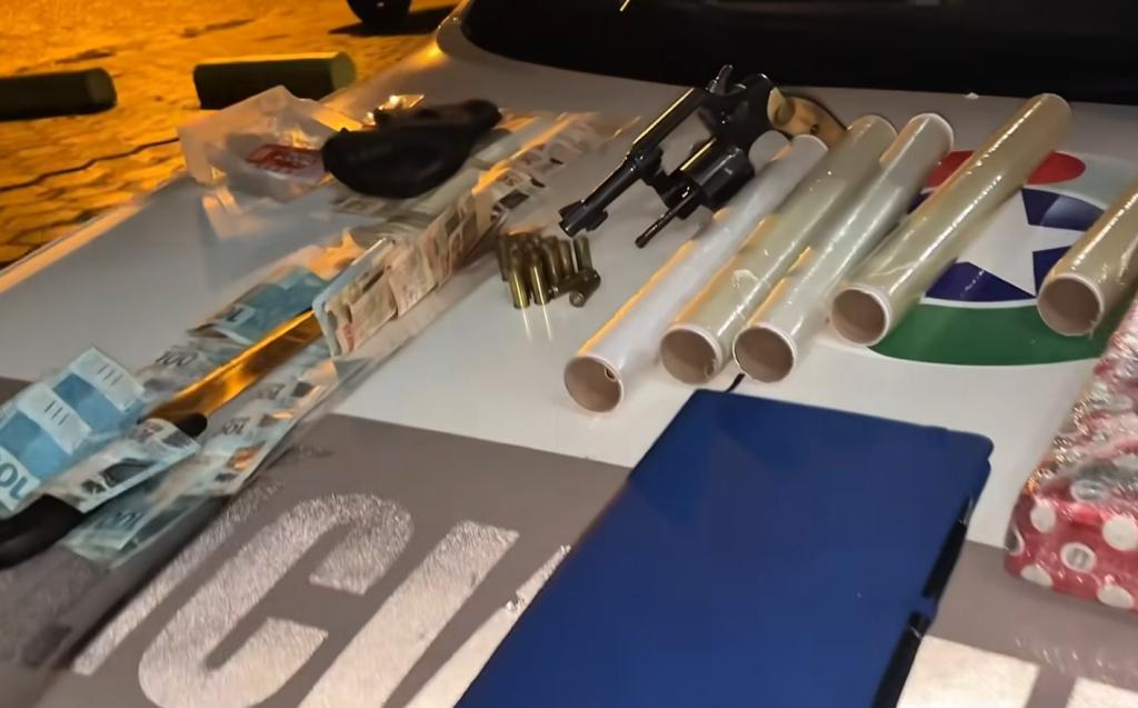 Durante a operação, os policiais apreenderam mais de 1 quilo de maconha, aproximadamente R$ 2 mil em dinheiro, uma arma de fogo, uma balança de precisão, plástico filme e diversos outros materiais comumente utilizados no preparo e na comercialização de drogas.