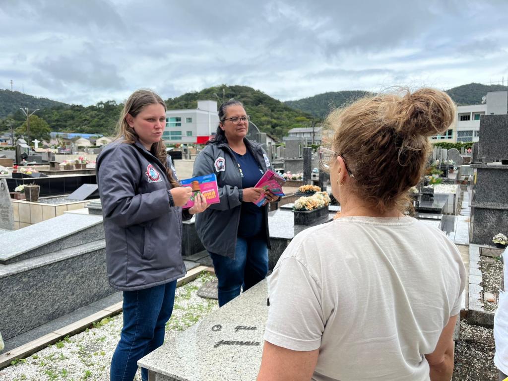 Na semana que antecede o Dia de Finados, celebrado neste domingo, dia 2 de novembro, a Vigilância Ambiental de Balneário Camboriú intensificou as ações de conscientização no Cemitério Municipal, localizado na Rua Jardim da Saudade, no bairro da Barra. A iniciativa busca orientar visitantes sobre os cuidados necessários para evitar o acúmulo de água em vasos e objetos, prevenindo criadouros do mosquito Aedes aegypti, transmissor da dengue, zika e chikungunya.