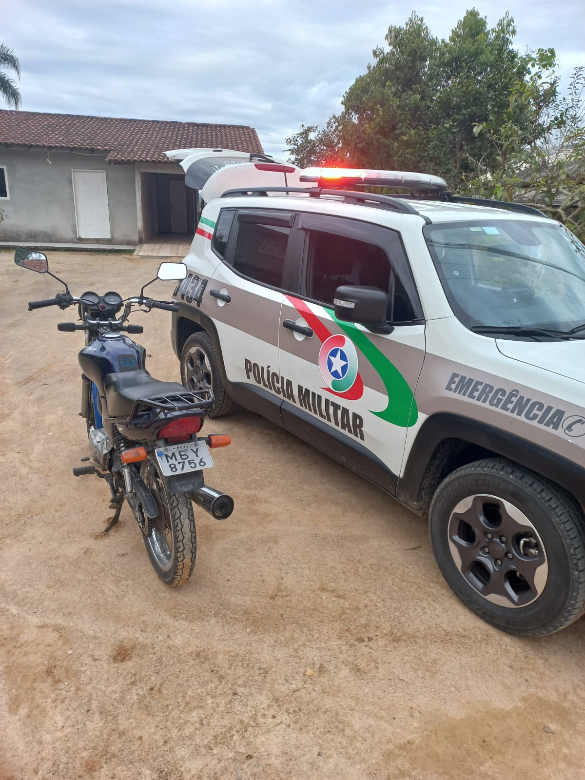 Uma motocicleta com registro de furto foi encontrada em uma residência no bairro Ribanceira do Sul, em São João Batista. A Polícia foi acionada por volta das 15h deste domingo, 21 de agosto.