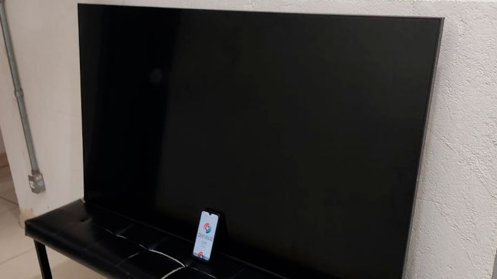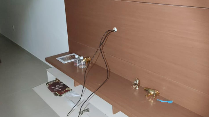 A dupla foi até o endereço, um apartamento térreo utilizado para veraneio no bairro Bombas, em Bombinhas. O prédio possui muros altos de vidro. A porta da sacada do imóvel foi arrombada. Havia uma outra televisão em cima da cama, que seria levada posteriormente.