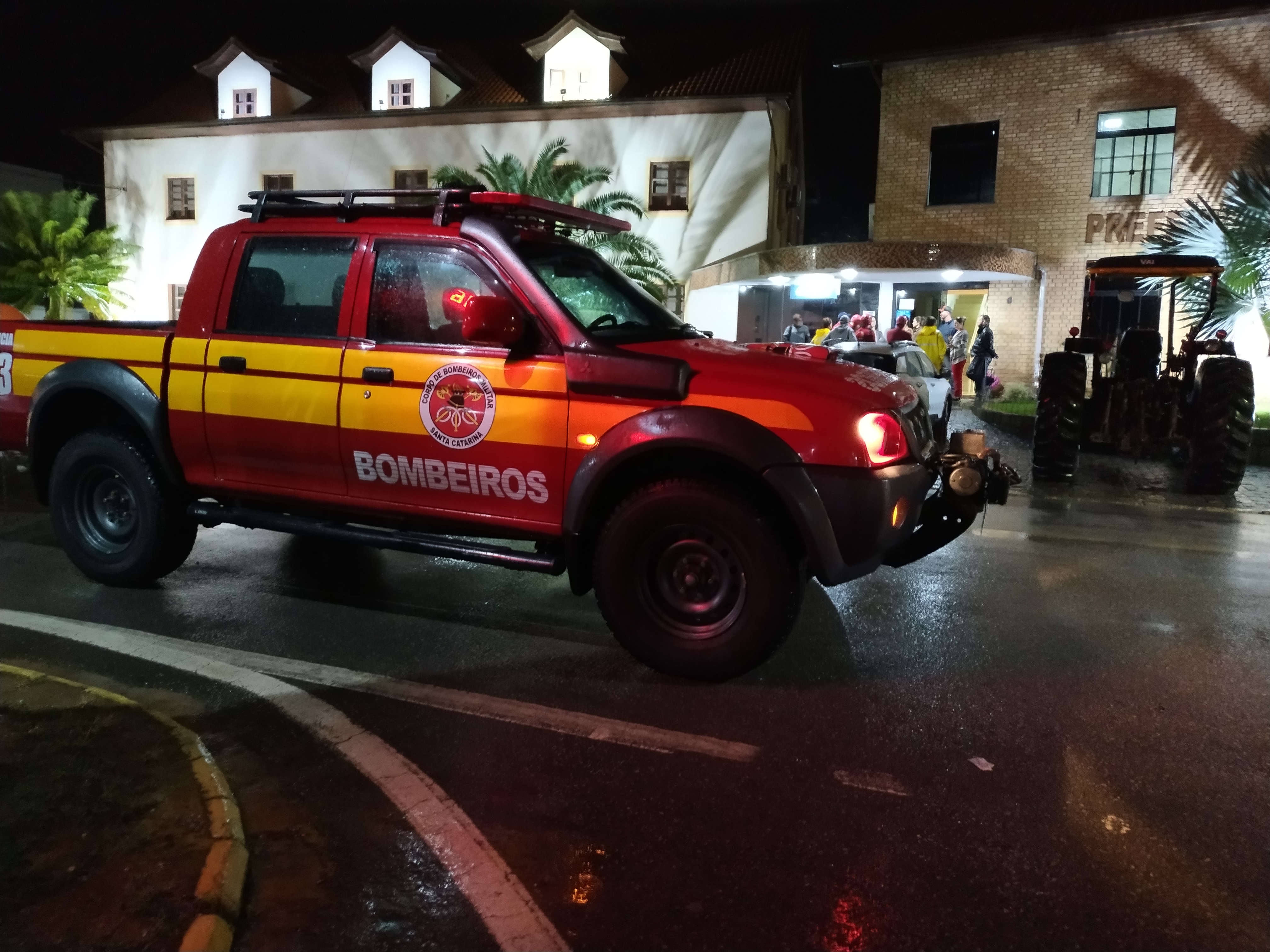 Seis veículos oficiais, como carros de tração 4x4, caminhões e ambulâncias foram usados, além de guarnições de Tijucas e São João Batista. Entre as operações em destaque, está a retirada de vários moradores na rua Rosinha Laus, uma das mais atingidas na Cidade das Cerâmicas.