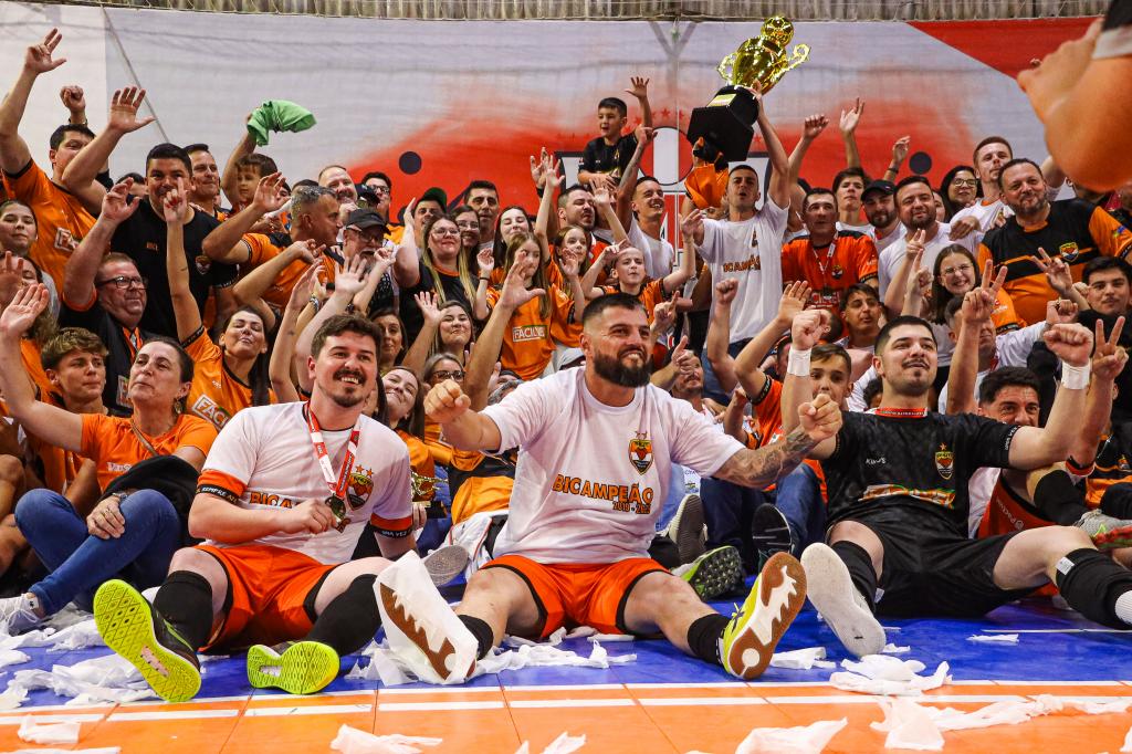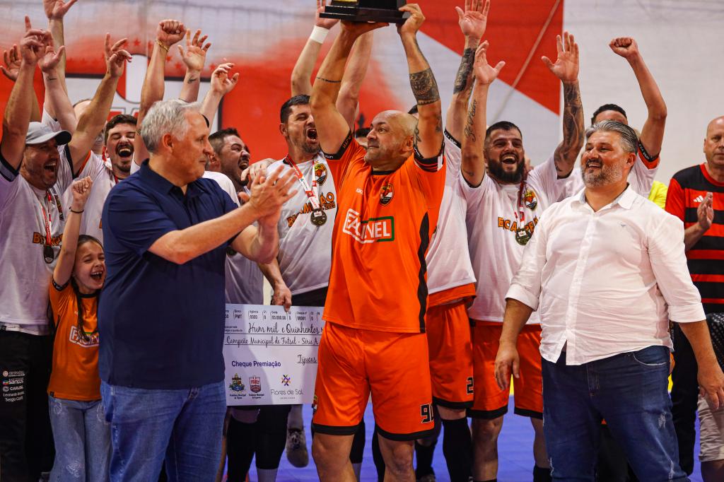 Os atletas da Feras Academia de Futebol receberam as medalhas e o troféu do vice-campeonato. E, na sequência, foi a vez dos campeões erguerem receberem a premiação e erguerem o troféu do Campeonato Municipal de Futsal de Tijucas.