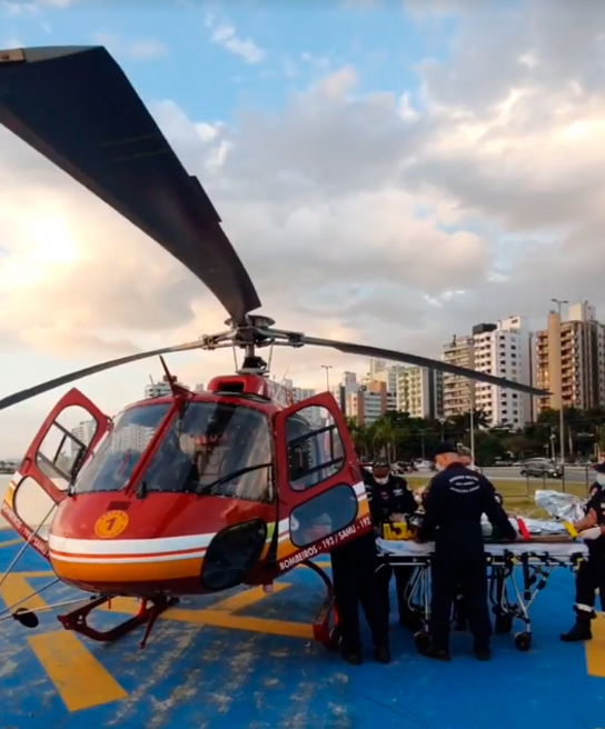 Diante da gravidade do caso, o helicóptero Arcanjo, do Corpo de Bombeiros, foi acionado e realizou a transferência do ferido ao Hospital Governador Celso Ramos, em Florianópolis. Seu estado de saúde não foi divulgado.