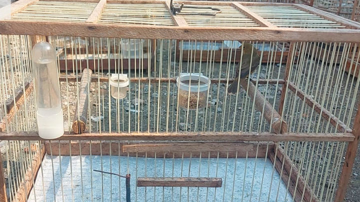 Foi apreendido um canário da terra da cor amarela e mais três coleirinhos. O Grupo de Operações e Resgate (Gor) foi acionado para recolher os animais.