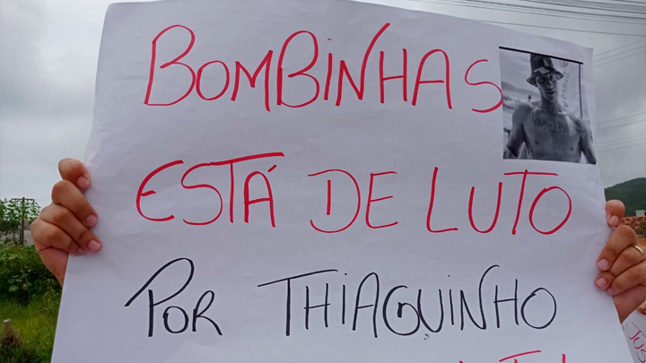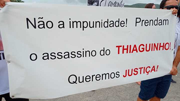 Thiago de Oliveira Bombazar estava prestes a completar 31 anos. O autor teria confessado o crime, mas foi solto pouco tempo depois. Com faixas e bandeiras, o grupo de manifestantes foi até o prédio pedir por “Justiça”.