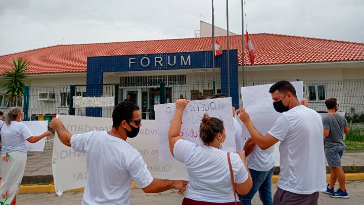 Familiares e amigos de Thiago de Oliveira Bombazar, assassinado após um ataque de ciúmes, foram para frente do fórum de Porto Belo pedir a prisão preventiva do autor do crime, ocorrido no último dia 15 de novembro, em Bombinhas.