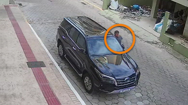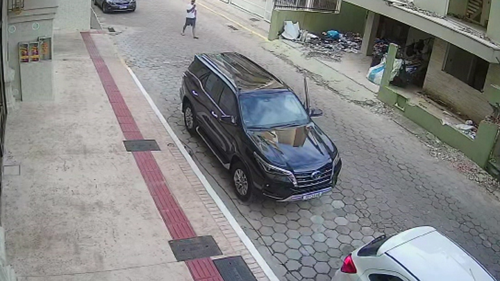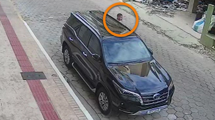 Na gravação, um rapaz aparece rondando o Toyota/HilluxSW4, estacionado em frente a um prédio em construção. Ele observa a movimentação encostado no automóvel. Em determinado momento, ele se aproxima da porta do motorista.
