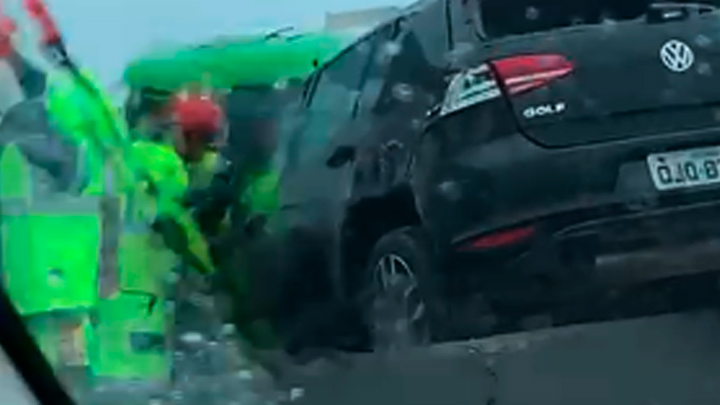 De acordo com a empresa concessionária que administra o trecho, o motorista de um VW/Golf perdeu o controle da direção e se chocou contra a barreira. Felizmente não houve registro de feridos e apenas danos materiais foram registrados.