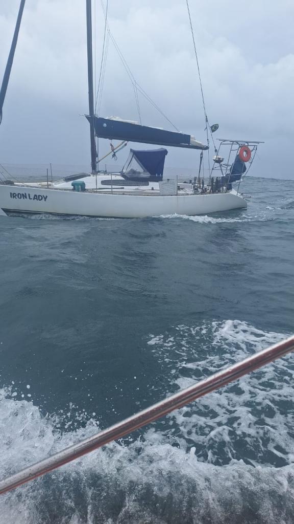 O motor da embarcação estava com avaria na bomba de água que refrigera o motor. Após consertado o problema, foi feito o acompanhamento da mesma até a Praia da Sepultura, único local com embate seguro para fundear o veleiro com aquelas condições.