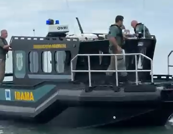 Os fiscais do Ibama alegaram que o capitão da embarcação tentou colidir com a lancha dos agentes. Os tripulantes, no entanto, negam a versão e afirmam que a aproximação se deu por falha mecânica: o motor da embarcação teria parado de funcionar naquele momento.