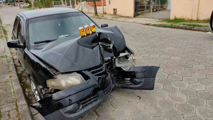 Ele havia colidido contra um poste de energia elétrica. Apesar de seu estado visível de embriaguez o rapaz se recusou a fazer o teste de bafômetro. O carro foi apreendido e o homem levado para a Delegacia. Foi necessário acionar a Celesc para fazer os reparos necessários.