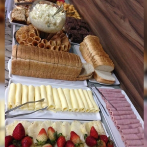Salgados fritos, assados, pratos quentes, bolos tradicional, bolos decorados, bolos artísticos (pasta americana), renda de açúcar, doces tradicional, finos, doces personalizados para festa de aniversário, eventos e reuniões de trabalho (empresarial), casamentos são especialidades da empresa, que já está no mercado há pelo menos 3 anos.