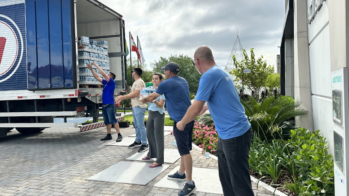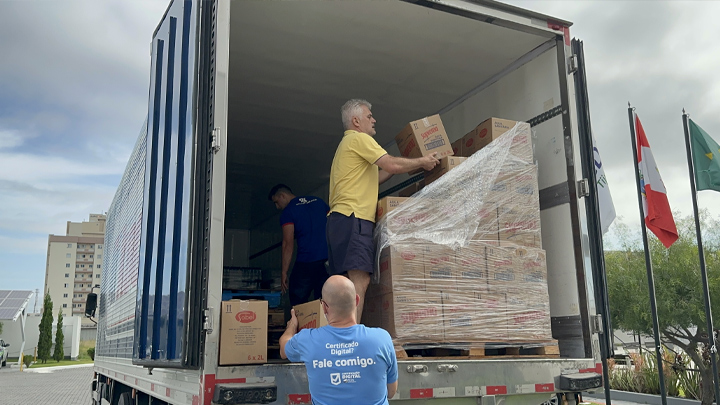 Entre os itens doados estão cestas básicas, produtos de higiene pessoal e limpeza, água e outros donativos. Eles foram descarregados no prédio da ACIT/CDL e seguirão para as autoridades responsáveis.