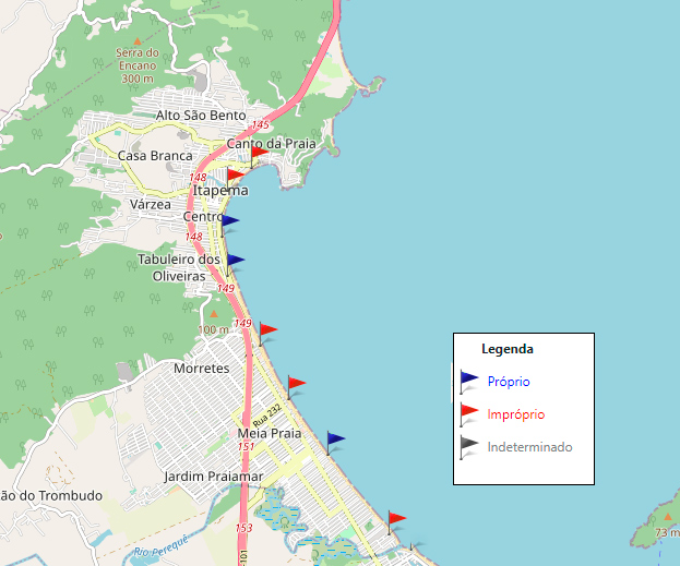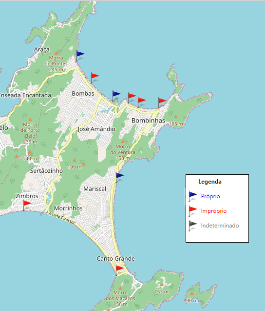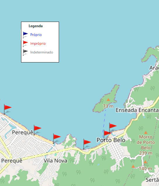 O município de Porto Belo é quem tem a situação mais delicada. Todos os seis trechos analisados na cidade, entre a praia central e a do Perequê, foram considerados como impróprios para banho. Veja abaixo os resultados: