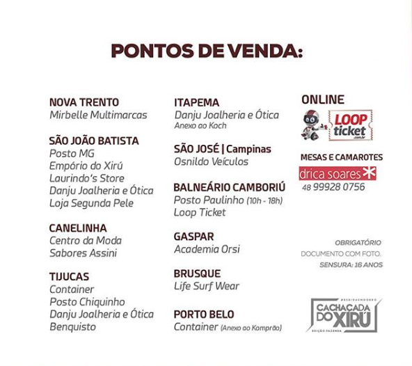 As informações e até mesmo reservas de mesas e camarotes podem ser feitas pelos telefones de contato (48) 9 9928 0756 / 9 9974 1198.