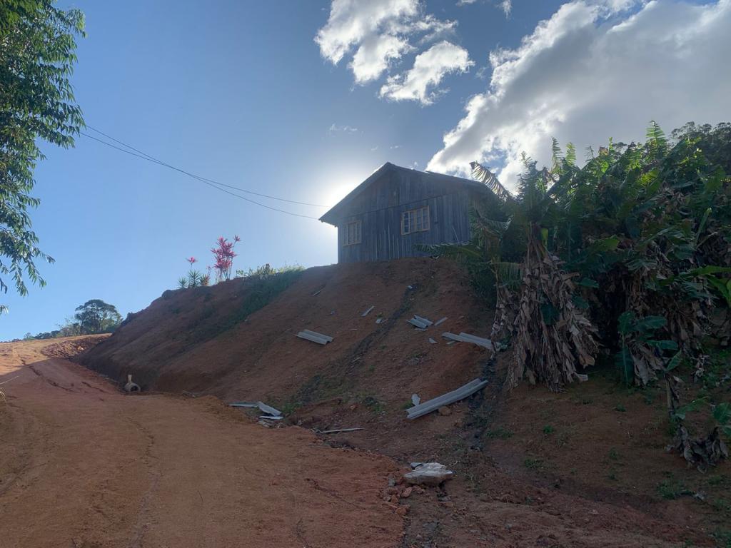 A residência, uma casinha de madeira simples, está situada no topo de um morro, oferecendo uma bela vista do pôr do sol e da BR-101.