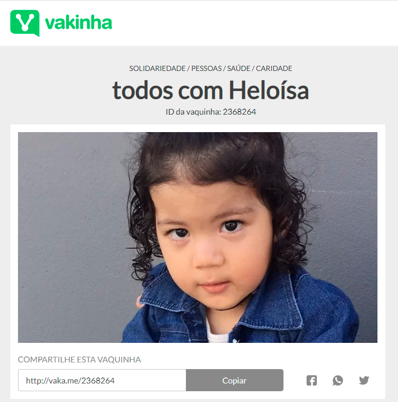 Para aqueles que entendem a necessidade e desejam contribuir de alguma forma, uma vakinha foi criada , a campanha se chama “Todos com Heloísa”, o ID da vaquinha é 2368264. Uma rifa também foi montada para arrecadar valores. Caso alguém tenha o desejo de contribuir de outra forma, poderá entrar em contato com a família através do WhatsApp (47) 9 9680 1331 ou pelo perfil no Instagram @todos_com_heloisa2.