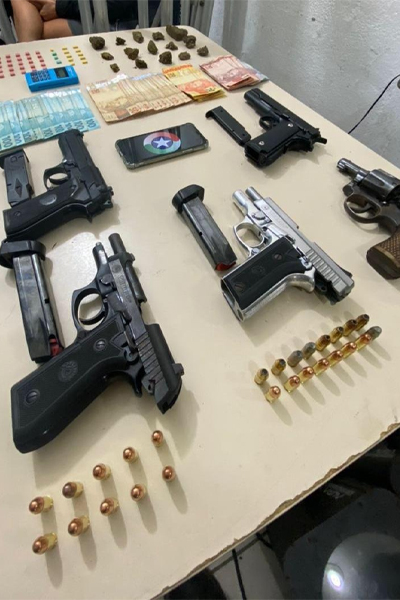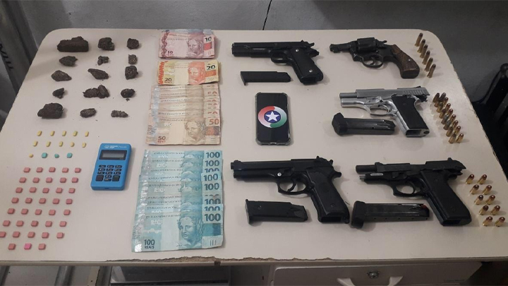 Durante o cerco um homem pulou a janela do segundo andar e caiu em meio ao campo aberto junto com uma pistola, ele foi detido. A pistola tinha numeração raspada e estava carregada com 10 munições. Outra arma, um revólver calibre .38, sem numeração, carregado com 06 munições, também foi arremessado pela janela.