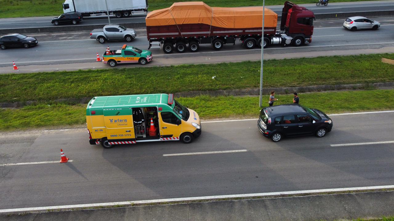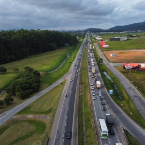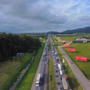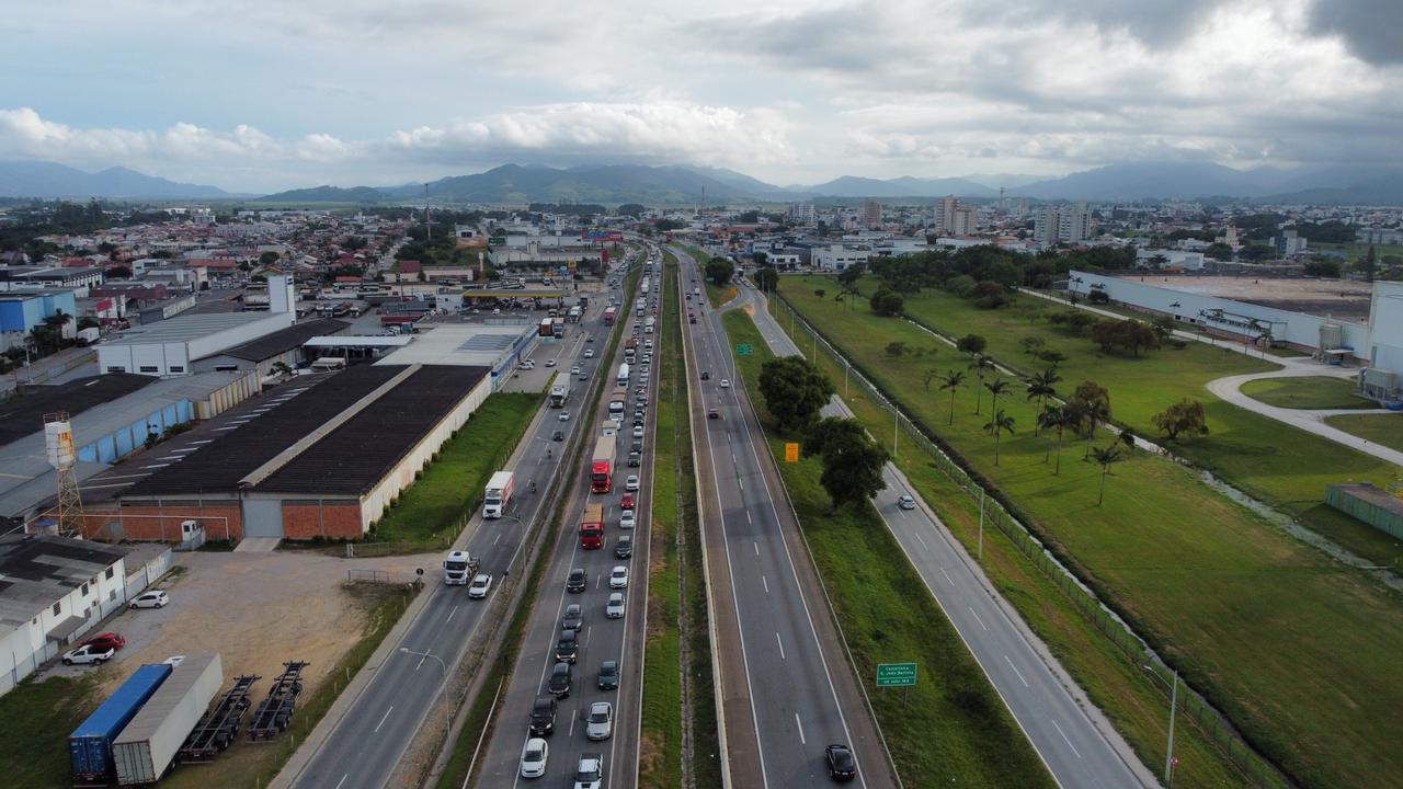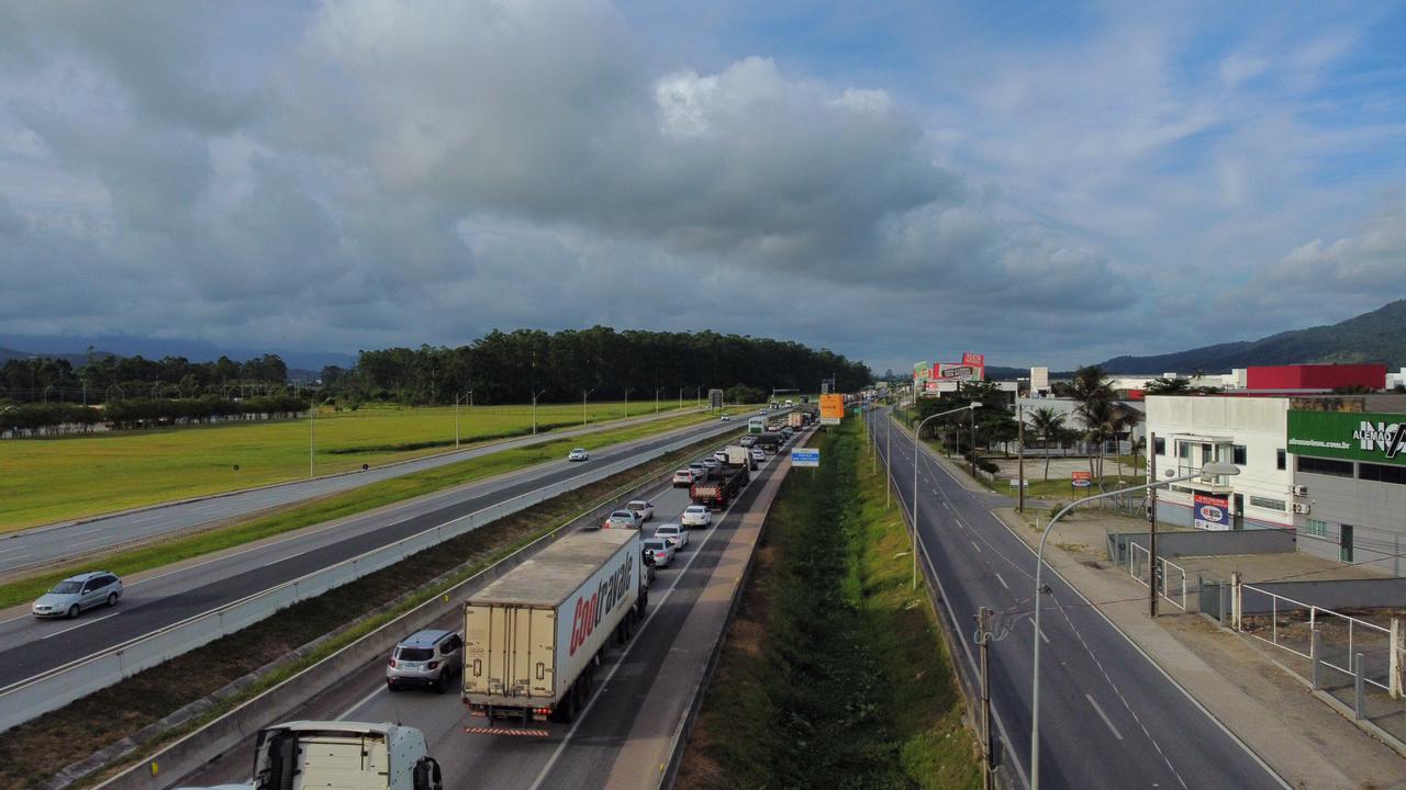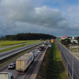 Desde a manhã desta segunda-feira, 3 de janeiro, a lentidão foi registrada. Neste momento (hora de atualização 18h30) o trânsito flui, mas quase parando em boa parte do trecho. Em um vídeo do drone/VipSocial é possível ter noção da lentidão.