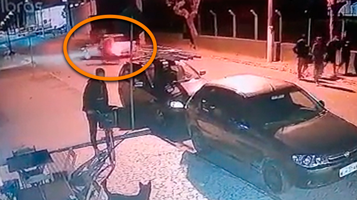 A colisão foi registrada por câmeras de segurança de uma lanchonete. Na gravação, o motociclista aparece em alta velocidade e tenta ultrapassar o Fiat/Pálio, de cor prata, ao fazer uma conversão à esquerda.