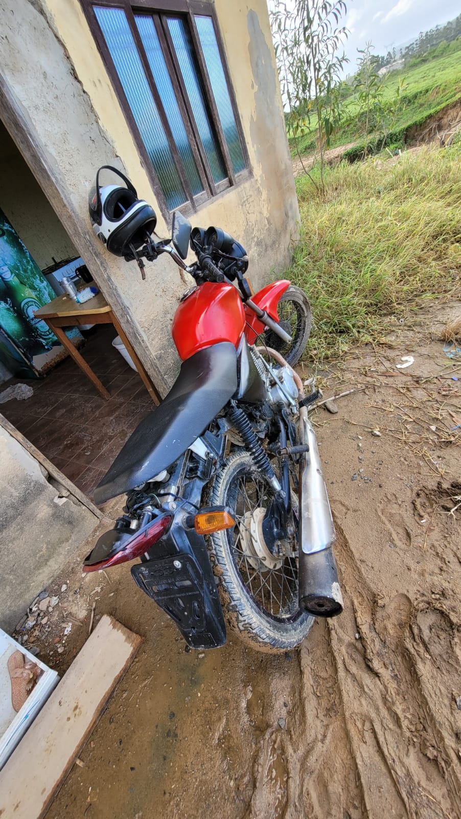 A motocicleta foi avistada estacionada no pátio da casa sem a sua placa de identificação. Uma hora após, “Patati” chegou caminhando e entrando na residência. A guarnição entrou na casa e realizou a abordagem.