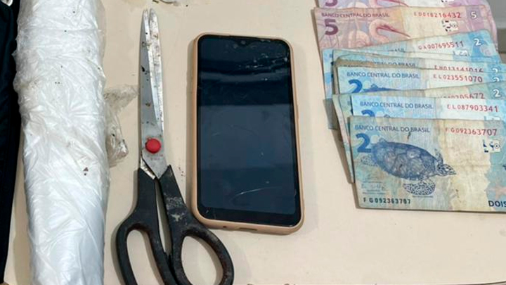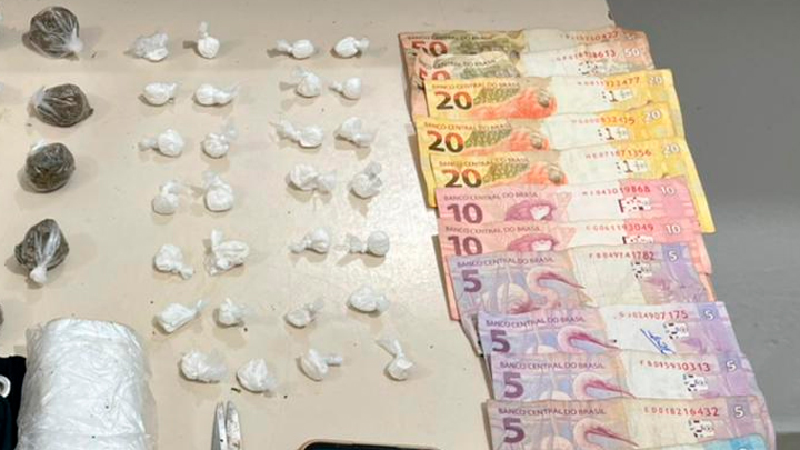 Em seus bolsos foram encontradas cocaína e maconha embaladas para venda, havia também R$20. No pacote que havia jogado fora anteriormente havia mais 22 porções de maconha, 26 porções de cocaína e R$204.