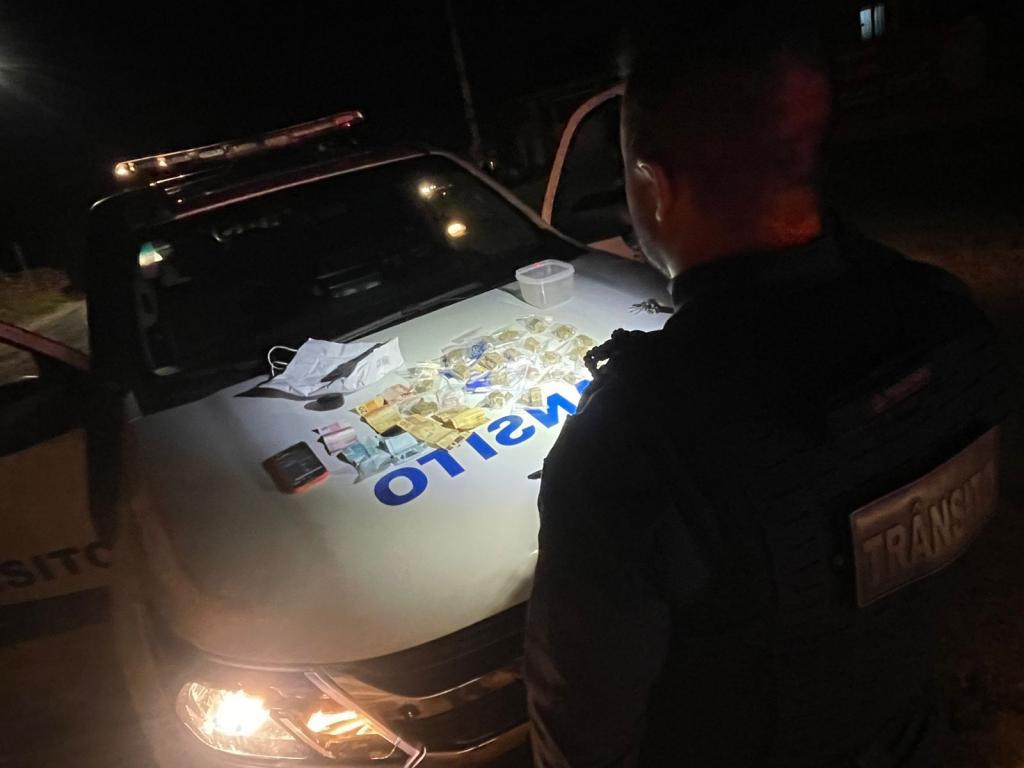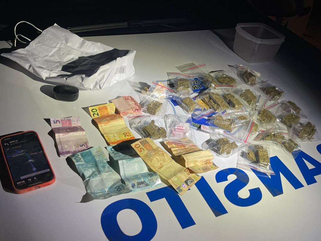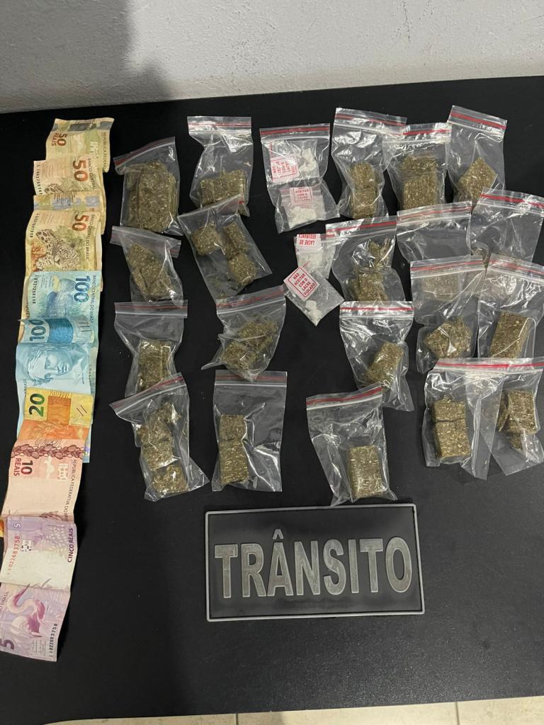Durante a abordagem, ao ser questionado sobre a fuga, o homem informou que estava em posse de entorpecentes. Em revista pessoal, foram encontrados 292 gramas de substância análoga à maconha e 6 gramas de substância análoga à cocaína, todas embaladas em porções separadas e prontas para comercialização. Também foram apreendidos R$ 435,00 em dinheiro.