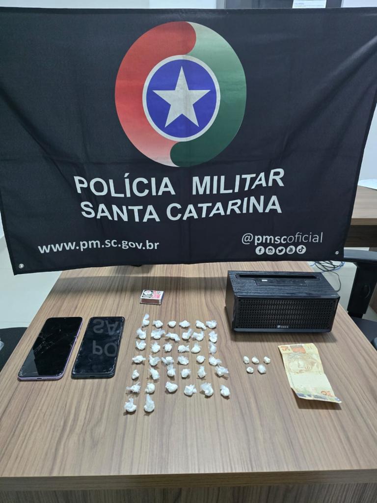 A Polícia Militar de Tijucas registrou, na tarde desta quarta-feira, dia 26 de novembro, uma ocorrência que começou com um furto em um estabelecimento comercial e resultou na identificação de receptação e tráfico de drogas. A guarnição foi acionada após o registro do furto e, com base nas informações repassadas pela vítima, iniciou rondas pelo município para localizar o suspeito.